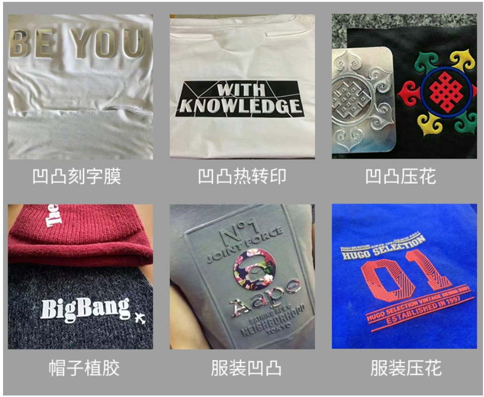 服裝凹凸壓花機(jī)適用于各種針織,毛衣,服裝的矽膠壓花,熱轉(zhuǎn)印