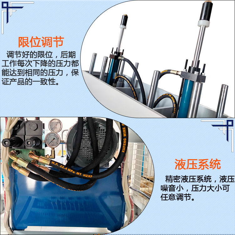 5、油壓配有止轉(zhuǎn)雙導(dǎo)桿,使工作更精確;另外油壓出力大小可通過調(diào)壓閥調(diào)整