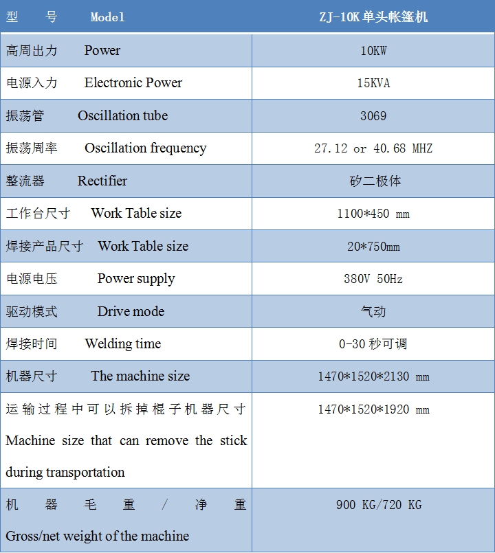 4000-618-233蓄水池熔接高頻機(jī)可根據(jù)用戶需要,選擇不同高周波功率大小的機(jī)器,每次焊接帆布材料的長度及寬度,均可以通過 改變高周波模具的尺寸長短寬度實(shí)現(xiàn)帆布熱合需要。不同的帳篷焊接機(jī)的內(nèi)側(cè)設(shè)有相應(yīng)跨度的帆布放料。以滿足大面的汽車篷帆布、戶外帳篷布、電影幕布、膜結(jié)構(gòu)、戶外遮陽布、戶外廣告噴繪布、PVC布的熔接接駁。高頻機(jī)的鐳射定位為可選配置,方便每次焊接時(shí)定位 .
