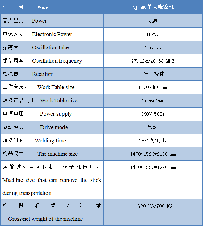 4000-618-233汽車篷布熔接高頻機可根據(jù)用戶需要,選擇不同高周波功率大小的機器,每次焊接帆布材料的長度及寬度,均可以通過 改變高周波模具的尺寸長短寬度實現(xiàn)帆布熱合需要。不同的帳篷焊接機的內(nèi)側設有相應跨度的帆布放料。以滿足大面的汽車篷帆布、戶外帳篷布、電影幕布、膜結構、戶外遮陽布、戶外廣告噴繪布、PVC布的熔接接駁。高頻機的鐳射定位為可選配置,方便每次焊接時定位。