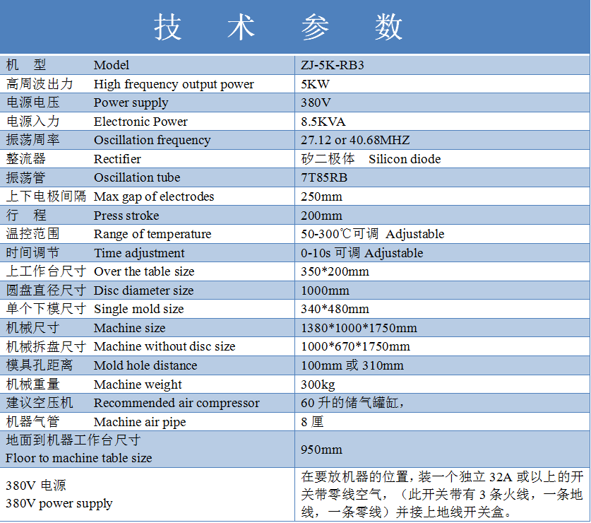 4000-618-233圓盤(pán)式高周波機(jī)型號(hào)為ZJ-5K-RB3,此機(jī)裝有進(jìn)口雙管防火花保護(hù)裝置,對(duì)高周波模具及生產(chǎn)產(chǎn)品起到很好的保護(hù)作用機(jī)器由振嘉機(jī)械設(shè)備有限公司高周波生產(chǎn)廠(chǎng)家專(zhuān)業(yè)制造,機(jī)器質(zhì)量已通過(guò)歐盟CE質(zhì)量出口檢測(cè)和ISO9001機(jī)器質(zhì)量檢測(cè);并對(duì)客戶(hù)的樣板提供免費(fèi)打板打樣,傳授產(chǎn)品生產(chǎn)整過(guò)程工序及提供生產(chǎn)方案
