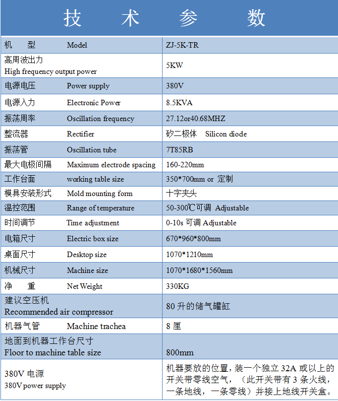 型 號: ZJ-5K-TR 醫(yī)療袋焊接高頻機(jī)