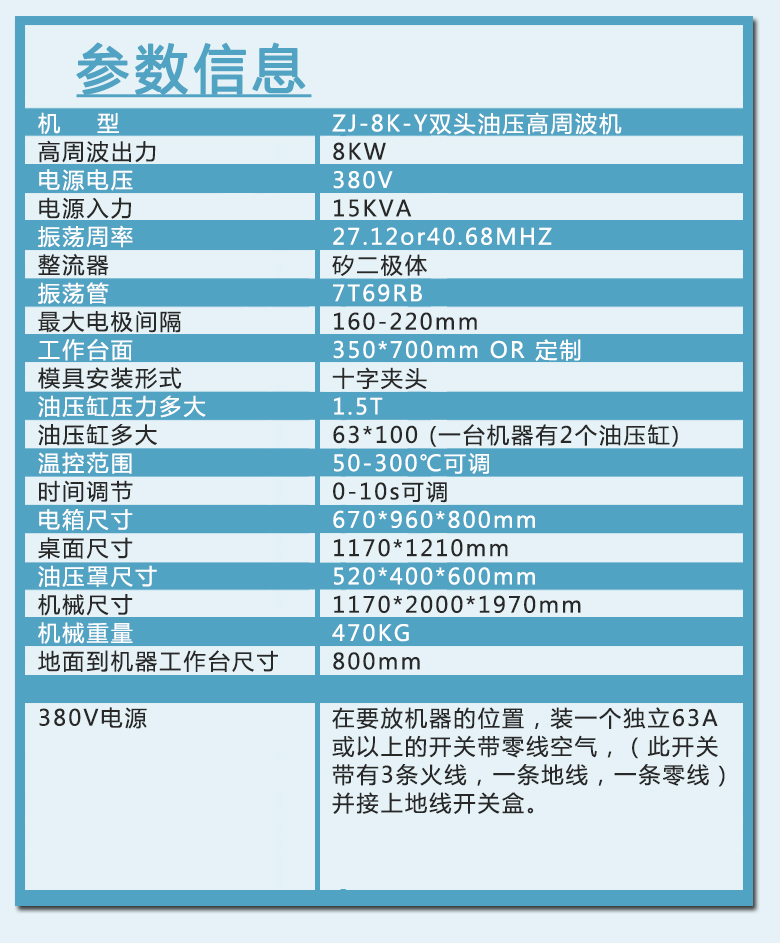 4000-618-233服裝壓花高周波機適用于純PVC、PETG、APET、EVA、TPU、PU或含有PVC10%,如適用于服裝壓花加工行業(yè)、汽車內(nèi)飾件行業(yè)、充氣玩具行業(yè)、家居用品行業(yè)以及各種塑膠產(chǎn)品的加工熱合焊接封口如:服裝壓花、鞋面壓花、鞋墊壓花、皮革壓花、皮革商標、服裝輔料壓花壓字、箱包壓花、包裝、眼鏡盒、引流袋、尿袋封口、血袋封口、熱水袋焊接、PVC銀幕焊接、雨衣熱合機、下水褲焊接、手機皮套成型、籃球壓花、足球壓花、塑膠塑料熱合焊接等。