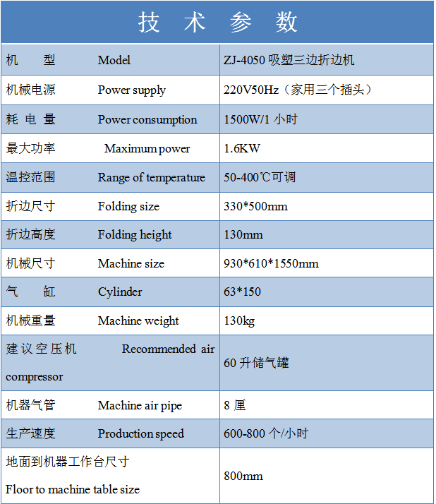 吸塑三邊折邊機(jī)是吸塑成型產(chǎn)品折邊的理想設(shè)備,適用于泡殼及塑料硬片類產(chǎn)品的三邊折邊和二邊折邊,廣泛應(yīng)用于吸塑包裝中的插卡包裝,如掛鉤、五金工具、兒童餐具、奶瓶把手、兒童牙膠、水果刀、筷子插卡吸塑等。