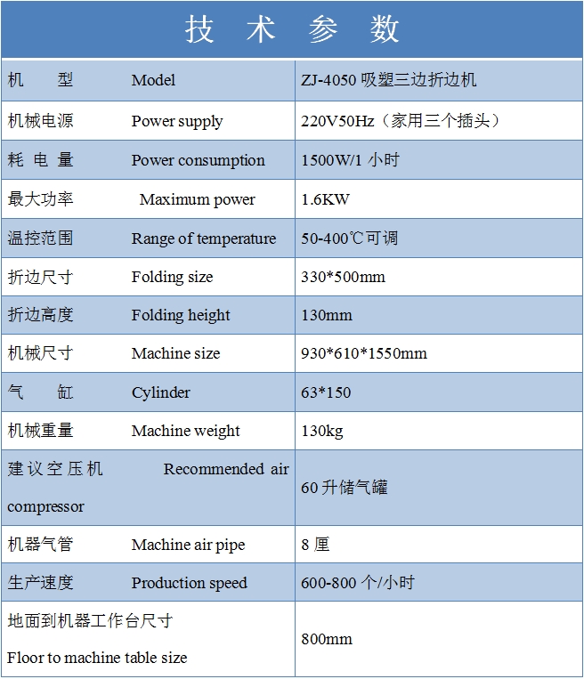 4000-618-233吸塑三邊折邊機是吸塑成型產(chǎn)品折邊的理想設(shè)備,適用于泡殼及塑料硬片類產(chǎn)品的三邊折邊和二邊折邊,廣泛應(yīng)用于吸塑包裝中的插卡包裝,如掛鉤、五金工具、兒童餐具、奶瓶把手、兒童牙膠、水果刀、筷子插卡吸塑等。